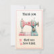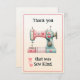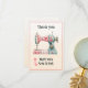 Send your thanks with this whimsical sewing machine themed flat card adorned with hearts and other sweet accents. Image of a pastel colored sewing machine has editable text and additional space for your personal note on the back. Printed on a faded cream background for an added rustic touch. Cute thoughtful gift for quilters and sewing enthusiasts.
