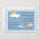 Sweet baby shower invitation, with a digital copy of a tole painting showing a mother sheep and baby against a sunny blue background. Whimsical checked frame surrounds the invitation. Personalise all the text on the front and back to suit your party needs. Available with pink accents.