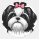Sweet Shih Tzu in Pink Hair Bow Classic Round Sticker