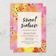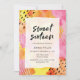 Throw a memorable Sweet Sixteen Birthday with this fun abstract pink and orange watercolor with glitter invitation.