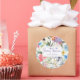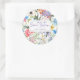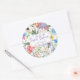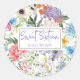Sweet Sixteen flower garden Classic Round Sticker with pretty wild country flowers in purple, lavender, green leaves and more, with a brushed script typography on an elegant editable background.