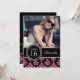 Girly, fun, cute, yet sophisticated and elegant, this personalised black and pink Glitter Damask Sweet Sixteen Party Invitation with your photo is the perfect way to invite your guests to your daughter's sweet sixteen party. Note: glitter is a PRINTED photo effect. Design by Elke Clarke©.