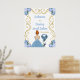 This sweet sixteen welcome sign features an elegant gold frame, a beautiful princess with red hair and a dusty blue dress, flowers and a balloon. This is perfect for a sweet sixteen birthday party.