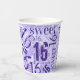 Sweet Sixteen Sparkle Word Cloud Purple ID265 Paper Cups