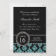 SWEET SIXTEEN, TEAL BLUE GLITTER, BLACK DAMASK INVITATION