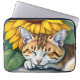 Sweet Sleepy Kitty Cat and Sunflowers Laptop Sleeve