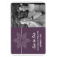 Announce your holiday or winter theme wedding with this Sweet Snowflake Photo Save the Date Premium Magnet. Featuring a delicate and elegant white snowflake and thin stripe on a solid purple background, this fun design is easy to customize. Simply add your own photo and wedding details in the text fields provided or click on "Customize It" to find more personalization options.
