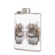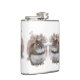 This cute hip flask features adorable red squirrels in the fluffy white snow. Their fur is brown and white.