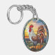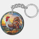 Sweet Stained Glass Chickens Rooster and Sunrise Key Ring