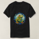 I give wanted to give this a 4 instead of a 5 because these Basic DARK T0shirts run unexpectedly SLIM or Narrow. Which is great if you do not have a potbelly, but I have a paunch. It isn't the shirt's fault that I've got a beer belly. The design and shirt itself is a quality cotton shirt. The color is more of a deep purple, but still a very pretty color. The Basic DARK T-shirts run a bit SLIMMER than the Basic Ts. The neck is a fraction narrower (or seems to be narrower) also. I'm a paunchy middle-aged woman and my neck is 12 inches (31cm) thick and the neckline fell about the same as in the photo of the man, and I had the desire to tug it a bit. So if you're a thick necked man or like loose shirts, be aware these are slimmer shirts. Once I get rid of my lockdown paunch it'll look great. The shirt washed well in cold water with no apparent bleeding. We don't have a dryer, so it hung dry. Did not shrink. Love the colors and the design. The design looks smaller on my shirt than it does on the model on-line. But still, it looks good on the shirt. The printing looks as it does on the model, just the size seems fractionally smaller. Washed garment in cold water, hung dry and design appeared unaffected.