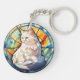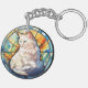 Sweet Stained Glass White Cat Key Ring