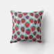 A sweet repeat pattern of juicy strawberries and the plant's white flowers are scattered across a sky blue background. This home decor pillow is a fun addition to your summer patio, themed celebrations, baby nursery, kitchen and more.