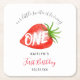 Sweet Strawberry Berry First 1st Birthday Square Paper Coaster