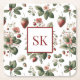 Sweet Strawberry & Floral Pattern Custom Monogram Square Paper Coaster