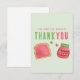 Express your gratitude in the sweetest way with our Thank You Card featuring the adorable Sweet Toast and Strawberry Jam design. With a delightful illustration of a slice of bread or toast topped with strawberry jam, accompanied by a jar of strawberry jam with a green lid, this charming card captures the playful spirit of our party theme. The light green background sets a cheerful tone, while the words "You're so sweet! Thank you!" convey your heartfelt appreciation. Personalise the card with your own message to make it even more special. Send this delightful Thank You Card to show your appreciation with a touch of whimsy and sweetness!