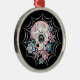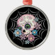 Dia de los Muertos (Day of the Dead) sugar skull designed in pastel colours with flowers set on a spider web.