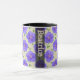 Opposite of mug's handle, there is a vertical semitransparent black name banner. You can easily customise both text and banner, or remove them even! Text size, font and colour can be adjusted, too.
