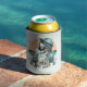 Embrace the summer vibes with this Sweet Summer can cooler, featuring a skeleton enjoying a cocktail against a retro sunset backdrop. Perfect for keeping your drinks cool and adding a touch of fun to any outdoor gathering.