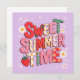 Sweet Summer Time Coquette Strawberry Retro Beach Invitation