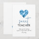 Sweet teacher with blue watercolour diamond heart holiday card