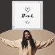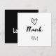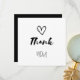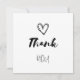 Thank You with a Heart—Love Us. Casual script design. Black and white. Ideal for a baby shower, or a child's birthday party.