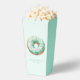 Add a touch of whimsy to your party with our "Sweet Time Pastel Green Doughnut Popcorn Favour Boxes"! These adorable favour boxes feature a delightful pastel green background adorned with colourful doughnuts and sprinkles, perfect for a doughnut-themed birthday celebration. Ideal for holding popcorn or other small treats, these boxes are made from high-quality, durable materials to keep your goodies fresh and secure. Their playful design and sturdy construction make them a fun and functional addition to your party favours. Make your celebration extra special with these charming doughnut-themed popcorn favour boxes!