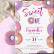 This cute "It's Sweet To Be One" doughnut illustration themed birthday invitation is perfect for a baby girl's first birthday party. It features pink, white, and purple hand-drawn doughnuts on a white background and text that you can customise with your own details. The invitation template is customisable in the listing editor and is also available as a digital download that's printable after you personalise it.