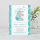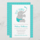 Sweet Turquoise Grey Elephant Baby Shower Invitation
