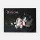 Sweet Tuxedo Cat and Pink Bunny Welcome Doormat