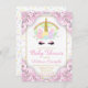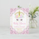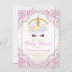 Sweet unicorn baby shower invitations with adorable pink floral unicorn face and eyes with gold horn on a rainbow and pastel dot and pink swirl background. These cute unicorn baby shower invitations are easily customised for your event by simply adding your details.