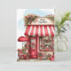 Personalize your special Valentine with this sweet flat card printed with a quirky little flower shop filled with lots of cute little hearts and potted flowers details. Watercolor style illustration has an abstract pastel background front and back. Just edit your name text on the shop front. Created in a palette of mostly reds and white colors, with your choice card edge styles and sizes.