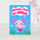 Sweet Valentine’s Day greeting card with a cute axolotl amphibian holding a heart. Sweeter than an Axolotl written on the cover. Art, image, and verse copyright © Shoaff Ballanger Studios, 2025.