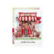 Personalize your Valentine for him or her on this sweet flat greeting card printed with an adorable couple and their quirky little shop scene filled with lots of tiny hearts, balloons and flowers details. Edit your names, monograms and other text front and back. Watercolor style illustration has an abstract pastel background front and back. Created in a palette of mostly red and pink colors, with your choice of sizes.