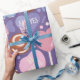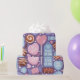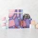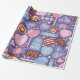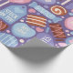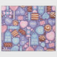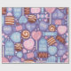 A playful and vibrant pattern showcasing an assortment of Valentine's Day-themed treats, including heart-shaped candies, lollipops, chocolates, and romantic phrases. The design features pastel tones of pink, purple, and blue, creating a cheerful and festive mood.