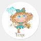 Cute Virgo sign with a curly-haired girl in retro 1960s colours.