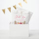 Cute cat-themed birthday party favour bags featuring "Thank You" displayed in a whimsical pink script with a painted watercolor cat with pink and mauve flowers near the bottom of the design. Personalise the watercolor birthday favour bags with your custom message and the birthday girl's name.