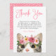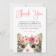 Cute birthday thank you card featuring "Thank You" displayed in a whimsical pink script with a painted watercolor cat wearing a crown of pink and mauve flowers shown below. Personalise the cat birthday thank you card with your custom message and name. Design coordinates with our Sweet Watercolor Kitty collection.