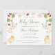 This stylish gender-neutral baby shower invitation features a delightful color palette of yellow and sage green. The invitation features lovely watercolor strawberry foliage and adorable baby chicks. The typography is simple yet elegant, complementing the overall theme. The back of the invitation features a coordinating yellow and white checkered background. To personalize the invitation, simply edit the template with your details and choose from the available paper options. Coordinating items are also available in our store or in the design collection.