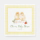 A sweet yellow and sage green color palette with lovely watercolor strawberry foliage and baby chicks are the features of this stylish gender neutral baby shower napkin. The typography is simple and elegant. Simply edit the template with your details and choose any options. Coordinating items are available in our store or the design collection.
