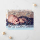 Thoroughly modern and simply elegant, this design is a perfect way to introduce your sweet baby boy. Features lovely cursive typography and two large photos of your baby - one on the front and one on the back. The front also holds baby's birth information, and on the back a special text area to be personalised with parents and family info.