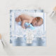 Beautiful baby blue and white pearl cross christening invitation. This elegant white and blue photo christening invitation is easily customised for your event by adding your photo and event details.