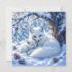 A sweet winter foxes themed puzzle. A sweet illustration of two white foxes, a mama and baby cuddling under a tree in the snow.