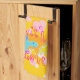 With Love Dinosaurs Cute Heart Pattern Kitchen Towel. Three cute little cartoon animals: blue Stegosaurus, orange Diplodocus and yellow Triceratops dinosaurs with sweet love hearts pattern with customisable orange background colour and customisable text "with Love". This cute dinosaur kitchen towel is fully customisable, add your text(s) and images! An adorable dinosaur gift for the big cartoon dinosaur fans!