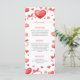 Beautiful sweetheart-themed baby shower menu card featuring soft red watercolor hearts and bows. Perfect for displaying entrée, main, and dessert selections at a baby shower, first birthday, or sweetheart-themed celebration. Coordinates with the full Sweetheart party collection for a cohesive event look. Printable and easy to edit for any menu.