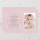 This stunning pink and white invitation shares your happiness on a special day. The square design features a lovely scroll with corner hearts and a photo window for your precious little one. The cross can be dragged to any location, made larger or smaller (+ -) or eliminated making this a versatile invitation for a little girl's special day. The card is easy to customise with your wording, font, font colour and choice of six paper types.