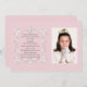 This stunning pink and white invitation shares your happiness on a special day. The square design features a lovely scroll with corner hearts and a photo window for your precious little one. The cross can be dragged to any location, made larger or smaller (+ -) or eliminated making this a versatile invitation for a little girl's special day. Want to save money? Print this invitation on the basic square corner paper. The card is easy to customise with your wording, font, font colour and choice of six paper types.