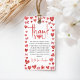 A sweetheart-themed favor tag designed for a first birthday celebration. Featuring a soft red heart pattern and elegant typography, this editable favor tag is perfect for party favors at a baby girl’s 1st birthday. Ideal for printing and attaching to treat bags, gifts, or party favors with a romantic heart-themed design.