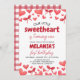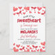 A sweetheart-themed first birthday invitation featuring red hearts, bows, and elegant typography. Perfect for celebrating a baby girl’s 1st birthday, this printable invitation suits heart-themed or Valentine-inspired parties. Ideal for digital or print use, it offers a charming and modern design to announce a special first birthday celebration.