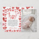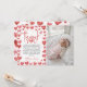 A sweet sweetheart-themed thank you card designed for a first birthday celebration. Featuring a soft red heart pattern and space for a baby photo, this editable thank you card is perfect for expressing gratitude after a baby girl’s 1st birthday party. Ideal for digital or printable use, with a romantic and modern heart-inspired design.