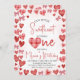 Sweetheart-themed first birthday invitation featuring red and gingham hearts, bows, and soft romantic typography. Perfect for Valentine-inspired or heart-themed birthday celebrations for a baby girl. This customizable invitation includes space for name, date, time, and party details, creating a charming and memorable keepsake for a first birthday party.